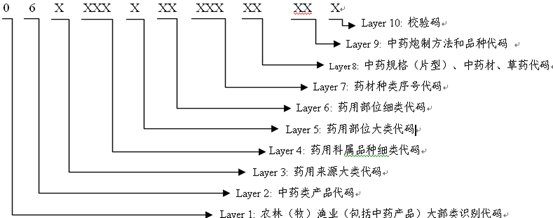 中药饮片编码采用10层共17位阿拉伯数字来表达中药的身份信息。