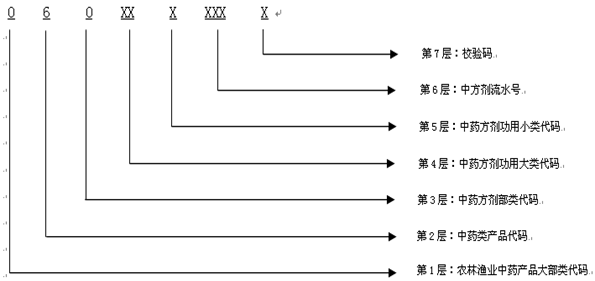 中药方剂代码分为7层10位纯数字定长结构,层级如下图所示: