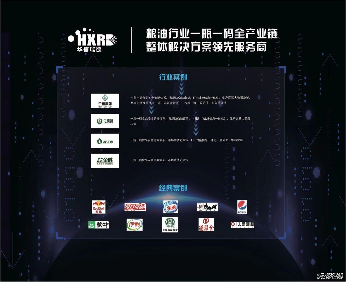 华信瑞德成立于2011年,是中国粮油学会油脂分会会员单位,是国家高新技术企业、中关村高新技术企业、北京软件和信息服务业协会理事单位、ISO质量管理体系认证企业、粮油行业一瓶一码全产业链整体解决方案领先服务商,国内知名的“一物一码”全产业链整体解决方案提供商,以产品“一物一码”管理为核心,利用大数据、云平台、物联网技术,搭建企业生产运营监控中心。为企业安全生产保驾护航,为企业转型工业4.0智能制造奠定基础。
